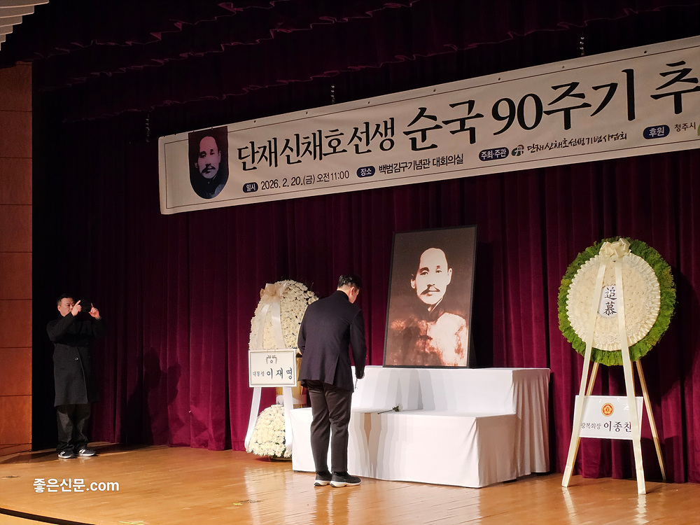 일제 강점기 치열한 독립운동가이자 민족주의 사학의 지평을 연 위대한 역사학자, 단재 신채호 선생(1880~1936)의 순국 90주기를 기리는 추모식이 2026년 2월 20일 오전11시 서울 백범김구기념관 대회의실에서 엄숙히 거행되었다.